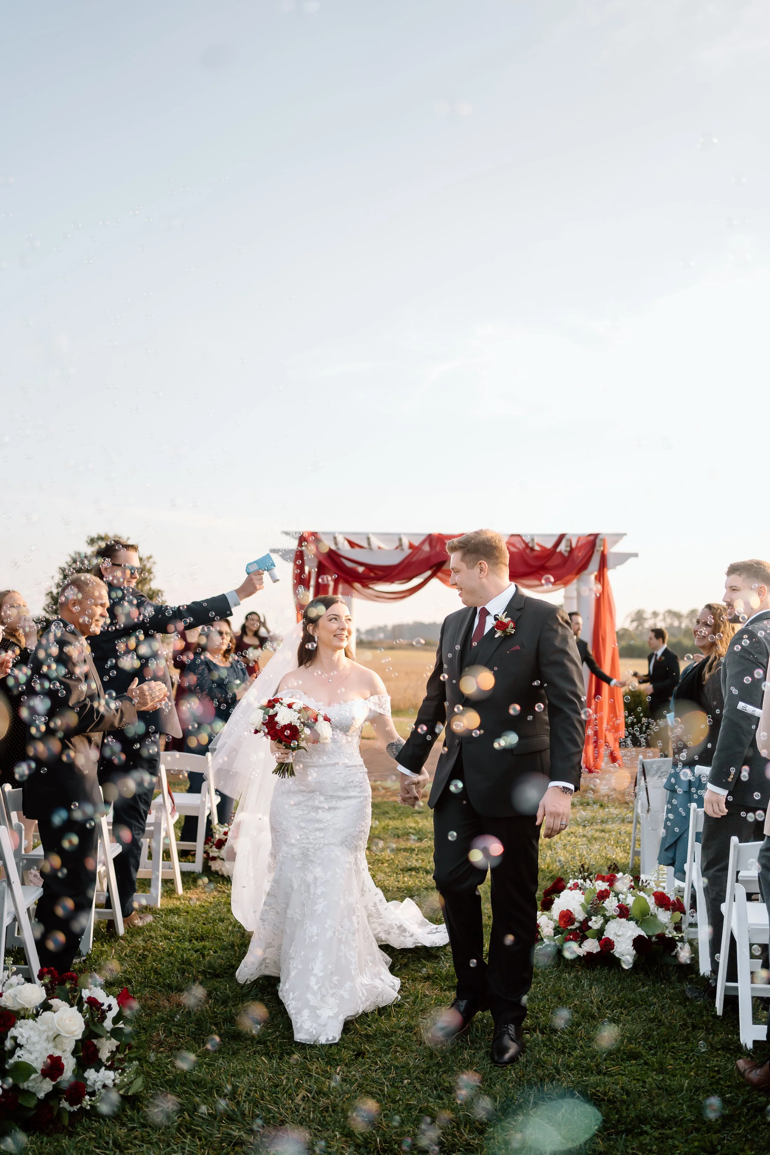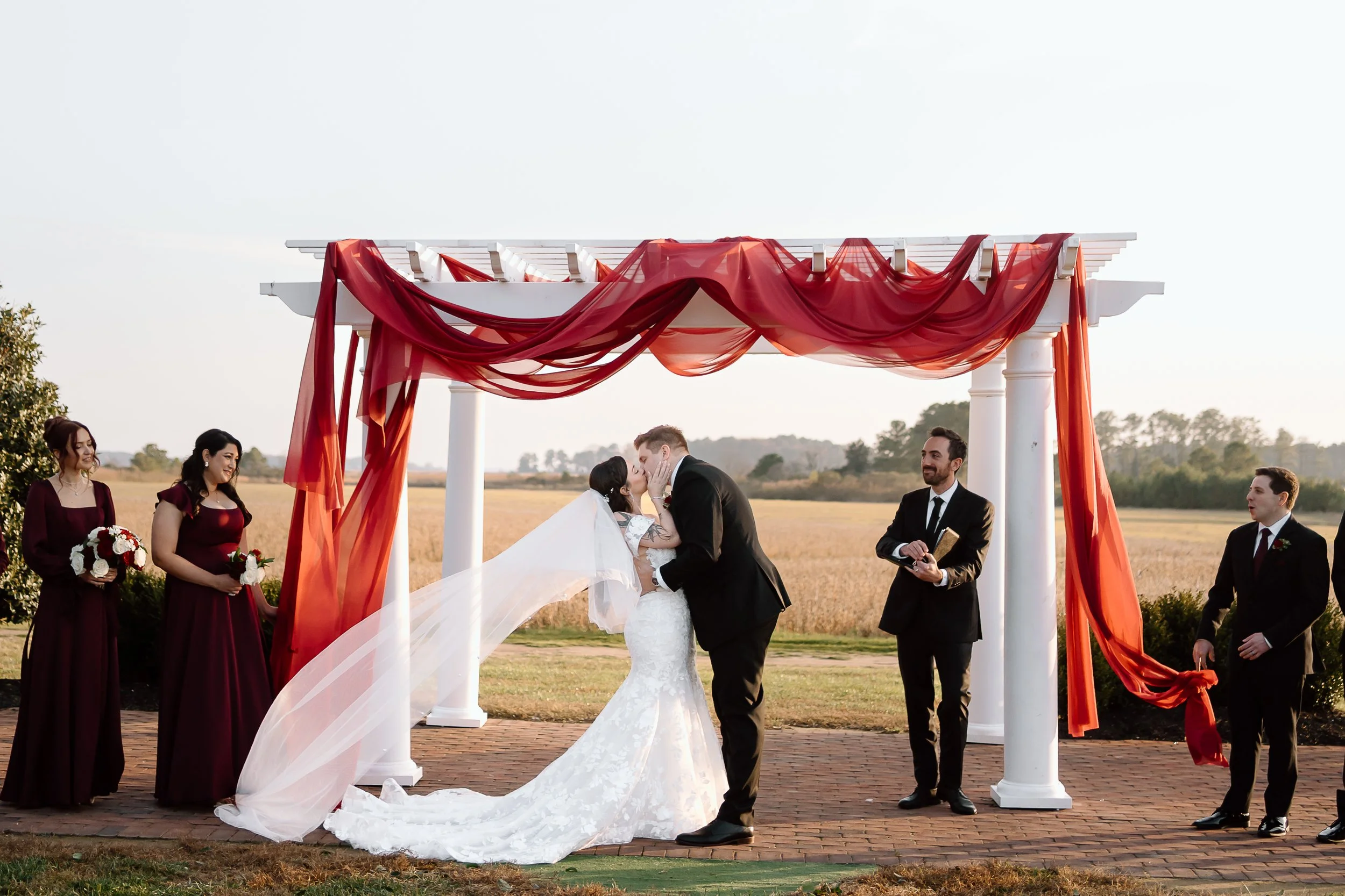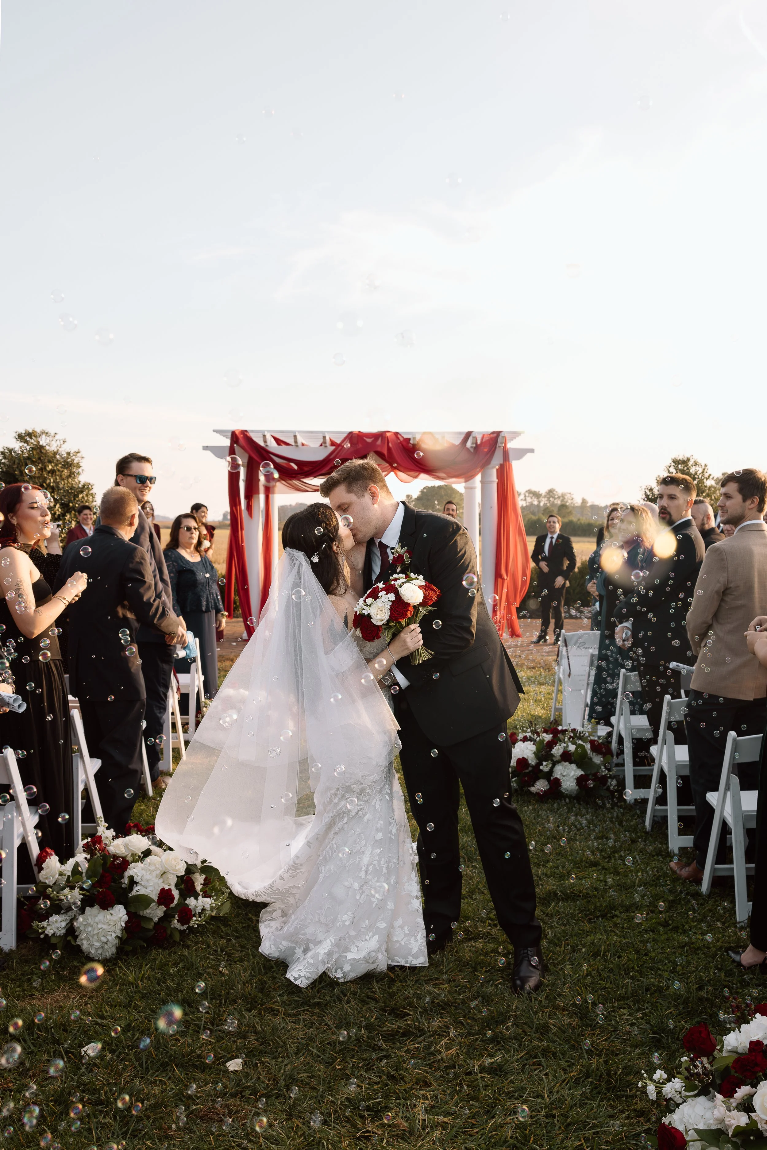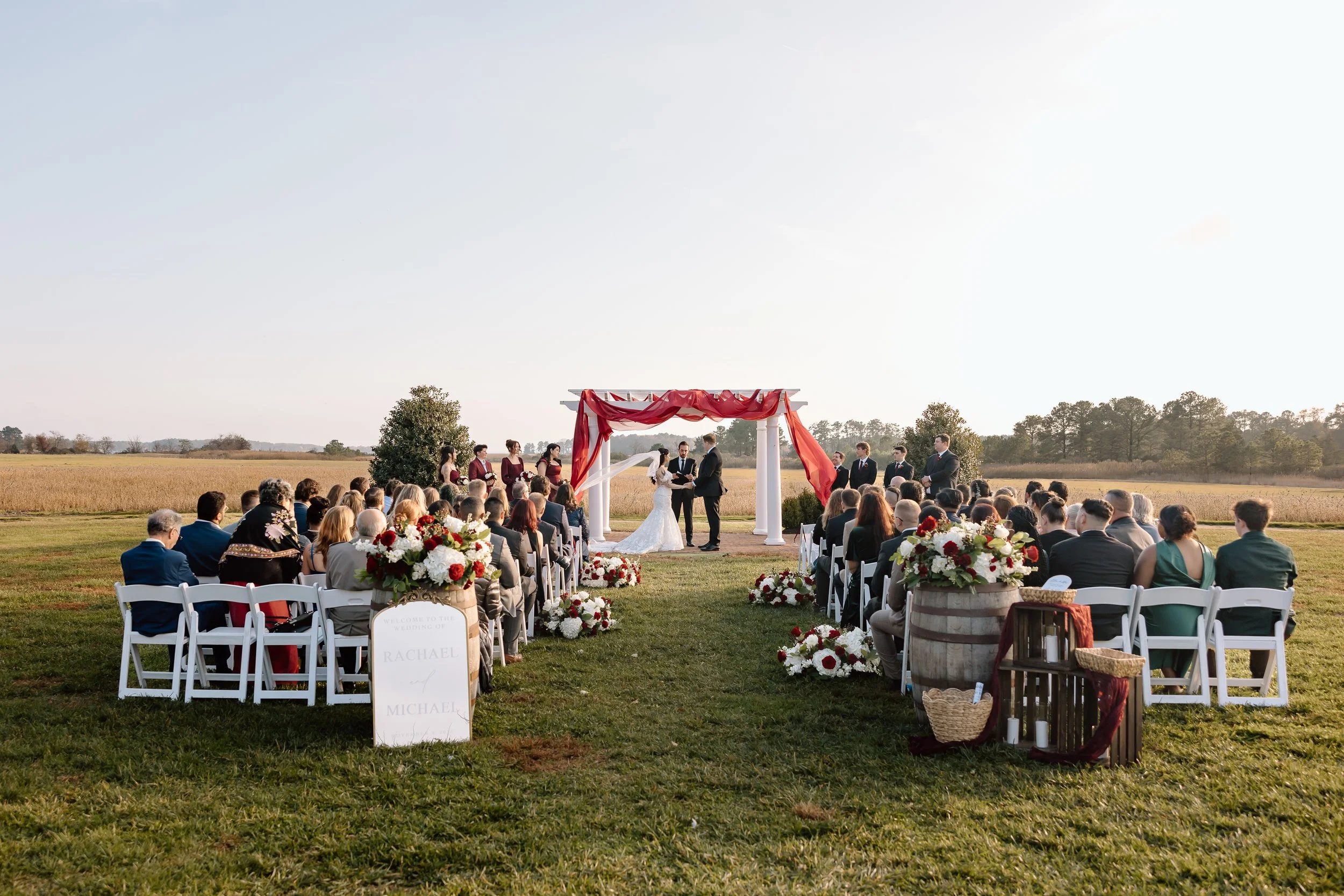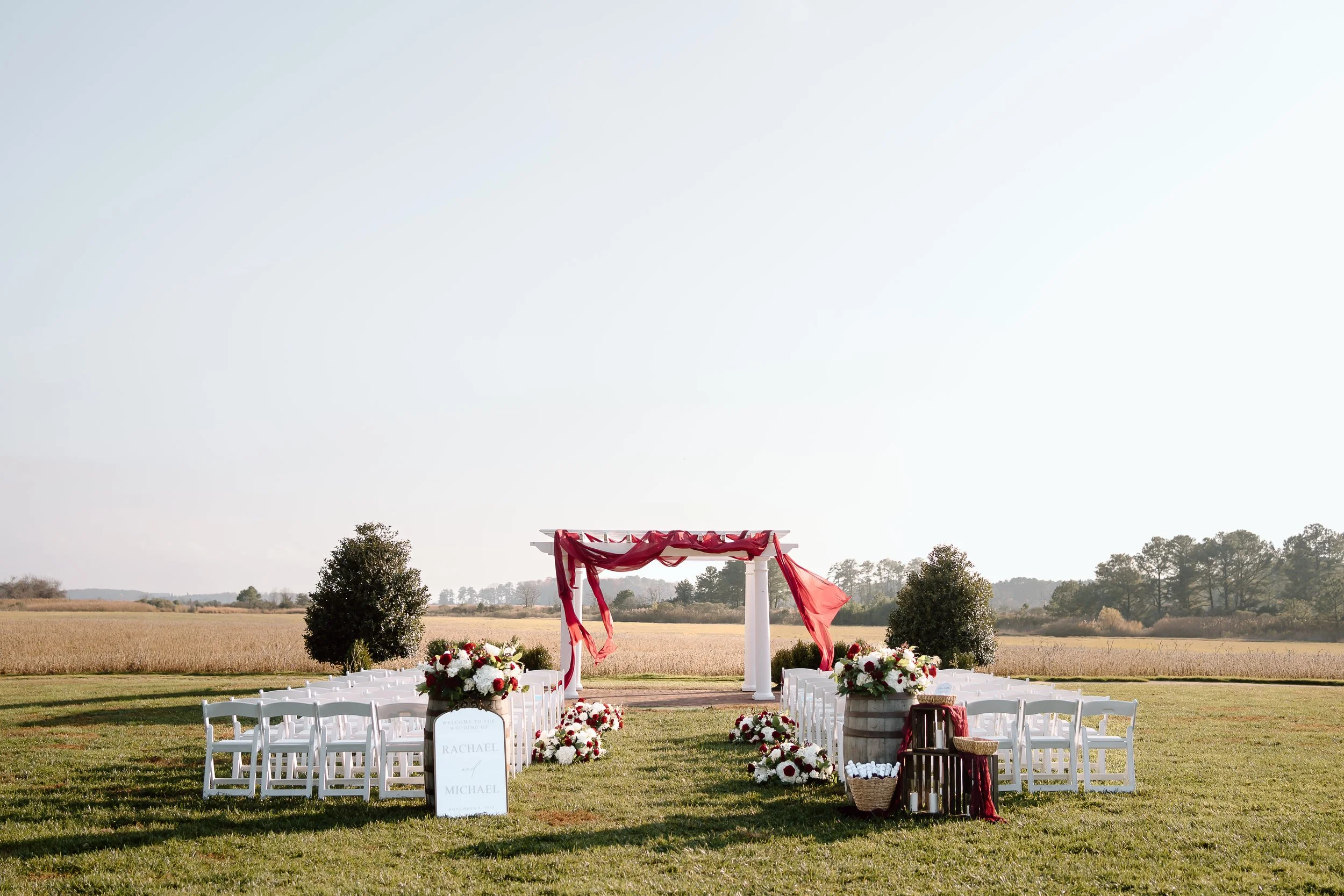 WE STARTED WITH THIS VISUAL OF THE BRIDE’S VEIL FLOWING IN THE WIND, IN TANDEM WITH THE ARCH DRAPERY. THEN CAME ALL THE OTHER GLORIOUS DETAILS THAT MADE THIS WEDDING SO ROMANTIC AND COZY.